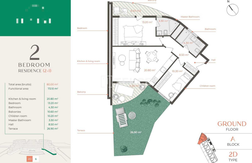 Built on a total land area of 7,668.40 m², the project consists of two residential blocks and one hotel block. The development includes 39 hotel apartments and 88 residential units and is enriched with premium on-site facilities such as 24/7 security and surveillance systems, indoor and outdoor swimming pools, indoor parking, children’s pool and playgrounds, pergola seating areas, an outdoor cinema, barbecue and patio relaxation areas, coffee point, co-working and study spaces, electric vehicle charging stations, a generator, spa and sauna, a fully equipped fitness center, shuttle service, and concierge services.